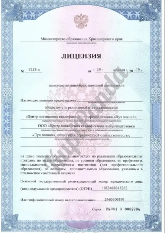Лицензия на образовательную деятельность(данные о документах вносим в Федеральный реестр)