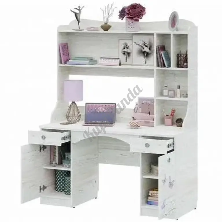 2. Практичный и удобный стол с дополнительным модулем-надстройкой позволяет полностью погрузиться в увлекательный учебный процесс, имея под рукой все необходимое. Канцелярия, книги, тетради и другие важные для учебы вещи найдут себе место в выдвижных ящиках, на полках тумб стола или надстройке.