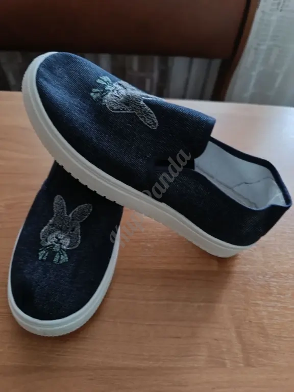 Джинсовые тапки 37 размер. Стелька 23.5см. Прочные, лёгкие. На передней части с двух сторон есть резинки. Зайка вышит