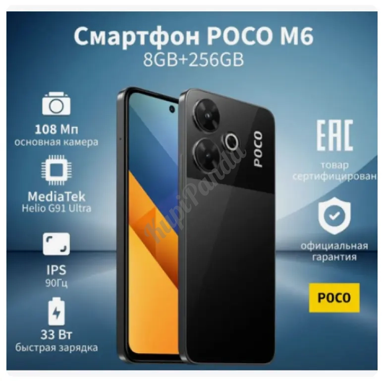 Poco Смартфон M6 Ростест (EAC) 8/256 ГБ, серебристый НОВИНКА